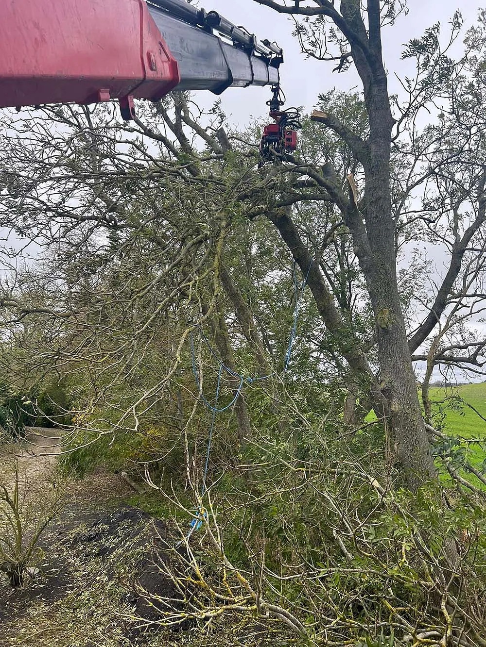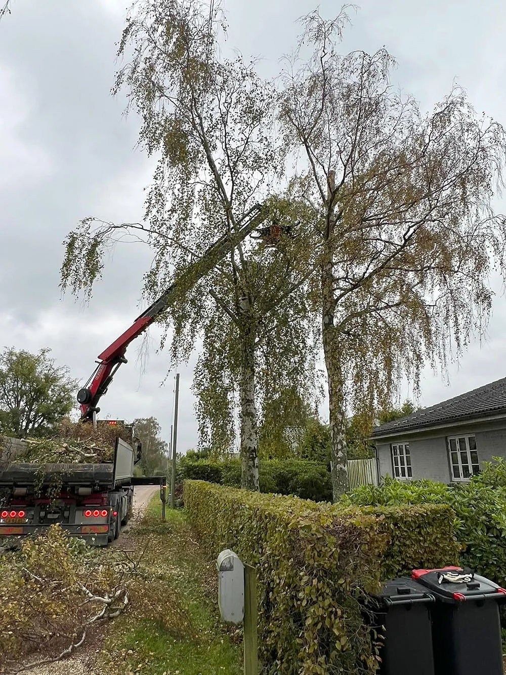 - Flishugning: Få lavet grenene om til flis til haven, eller lad os køre det væk.